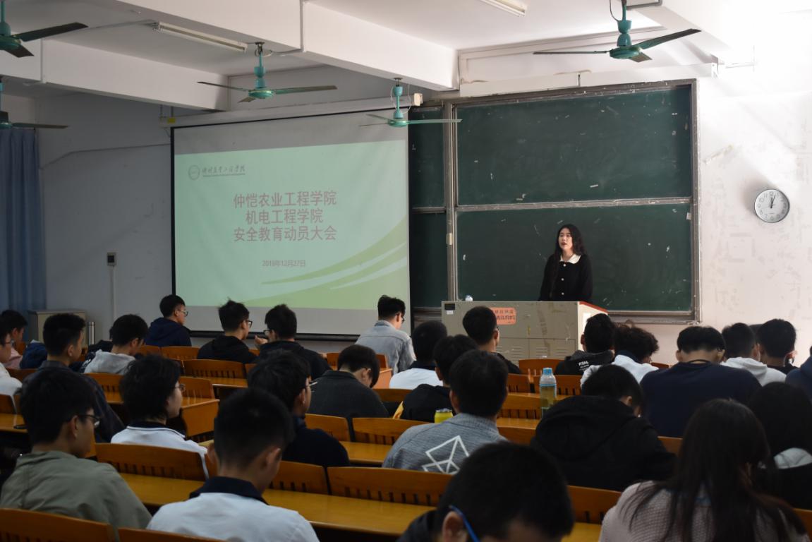 为进一步提高学生安全意识,加深对安全隐患的了解,杜绝安全事故的发生,机电工程学院于2019年12月27日在杨钊杨勋楼208召开安全教育动员大会,该院辅导员王澜珂老师、熊伟老师,以及各班班长、心理委员和宿舍长参加了本次会议,会议由王澜珂老师主持。