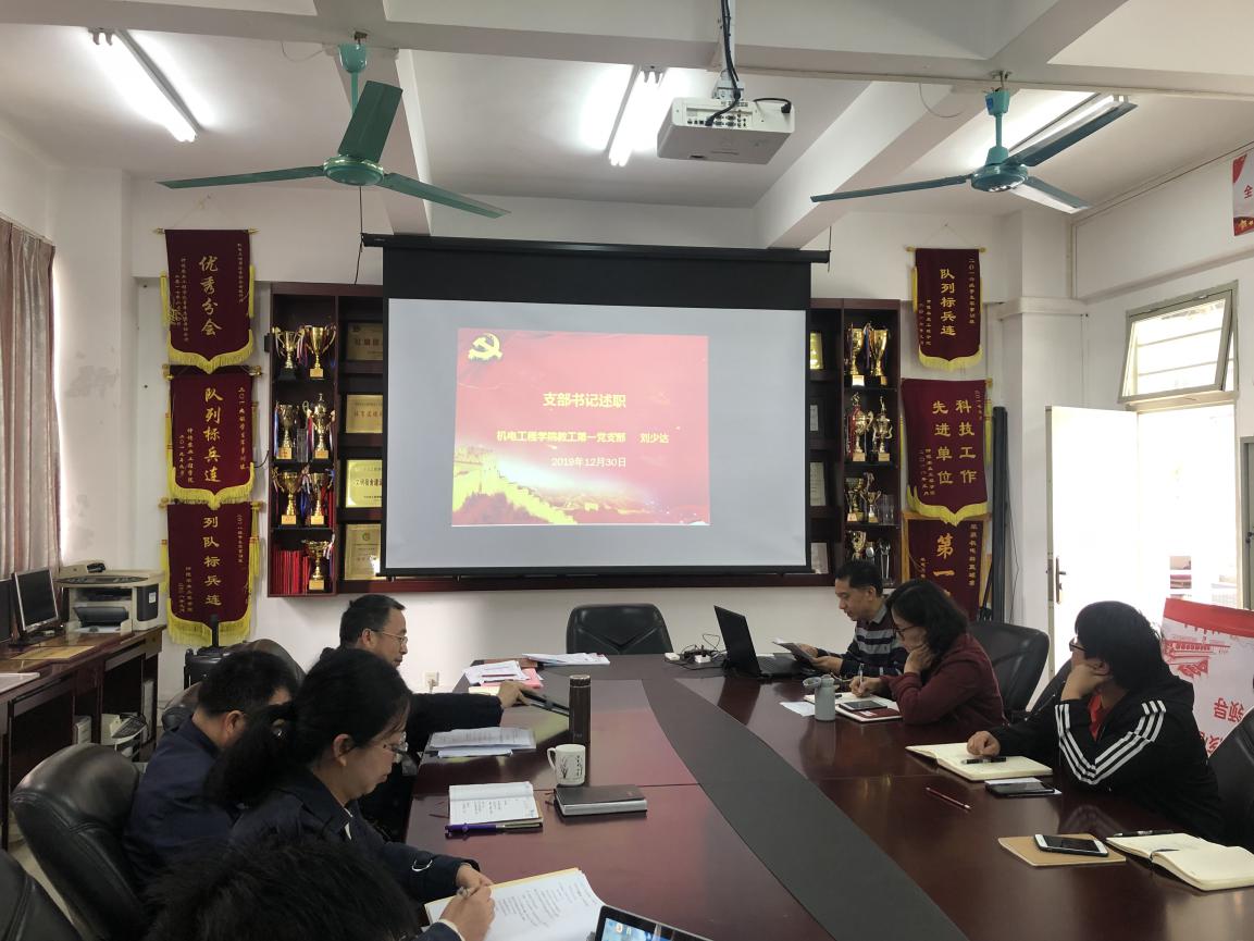为深入贯彻落实习近平新时代中国特色社会主义思想和党的十九大精神,扎实推进“不忘初心、牢记使命”主题教育,进一步推动基层党组织建设,2019年12月30日上午,机电工程学院在白云校区刘宇新楼202会议室召开了党支部书记抓党建工作述职考核评议会。该院党总支委员、各支部书记、党务工作中心同志参加了评议会。会议由该院党总支副书记、院长丁力行主持。