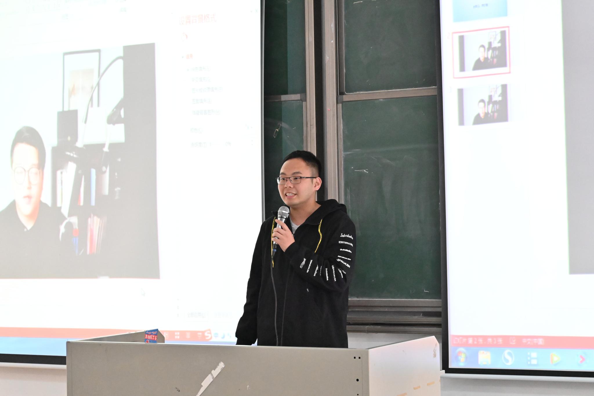 李剑峰老师以我院2010级草业科学曲索文师兄给学弟学妹们的寄语视频引出这次会议的主题——“勇敢起来,努力实干”。曲师兄用他的学习工作经历总结出两点:第一,勇敢起来。他概括地阐述了他本科四年、工作、创业这一人生阶段的经历,其中包括遇到过的种种困难以及战胜困难的方法。第二,实干起来。他建议同学们在努力完成学业任务的同时,补充未来职业需要的技能,实干起来,说到做到。