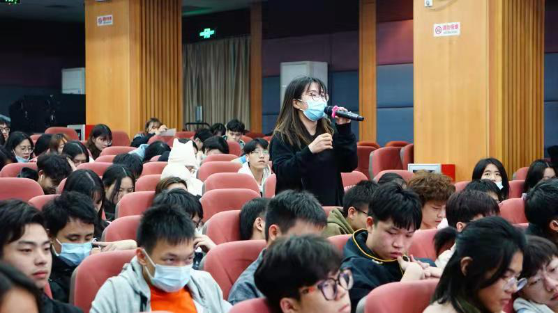 在杜老师的分享结束后,同学们结合学习规划和将来职业选择,与杜老师进行了热烈的讨论。互动过程中,杜老师妙语连连,金句不断。比如当谈及疫情后就业面试的注意事项时,杜老师以“十个优点,不如一个特长”回答,提醒同学们要最大程度的发扬自己的优点;当提到创业注意事项时,杜老师则勉励同学们要拉得下面子、舍得求人,并对自己进行盘点,扬长避短。