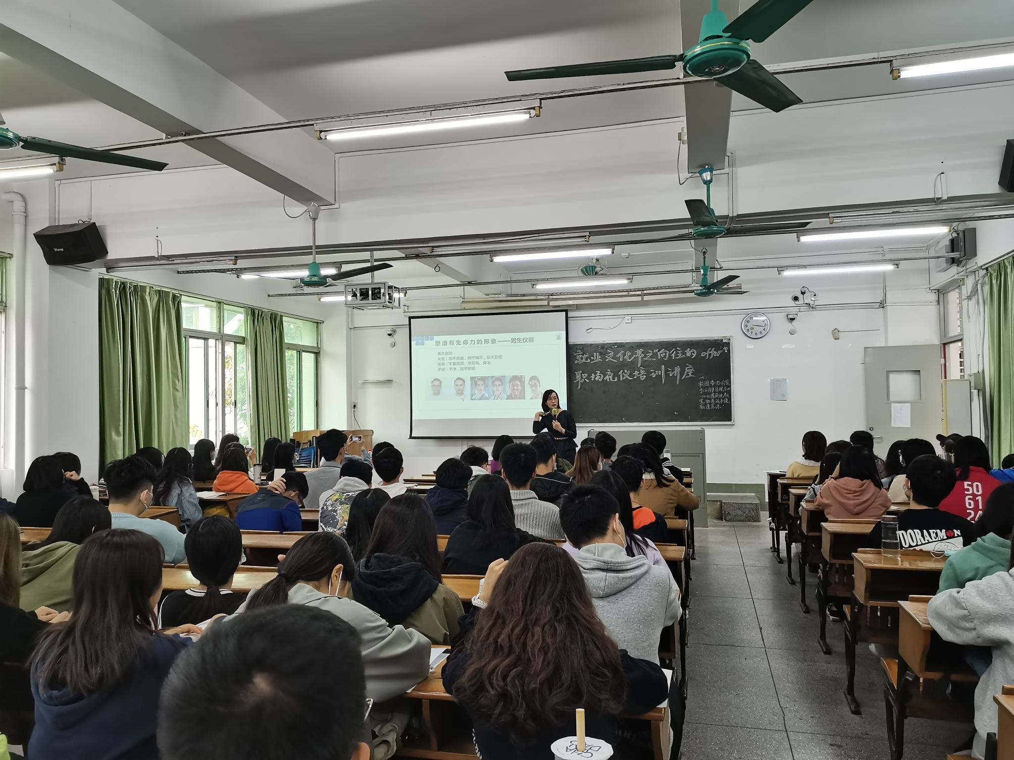 12月9日下午,管理学院在海珠区教学楼209举办就业文化节之职场礼仪培训讲座,管理学院邀请到广东省企业培训研究会的李小方老师主讲,百余名学生参与了本次讲座。