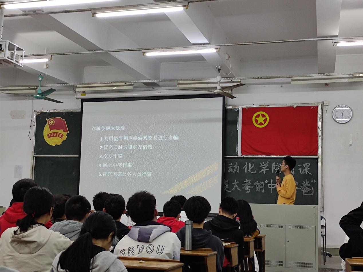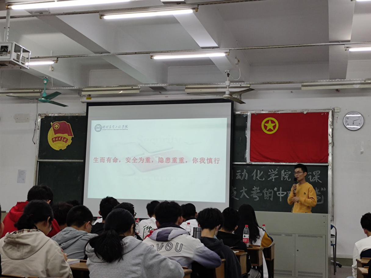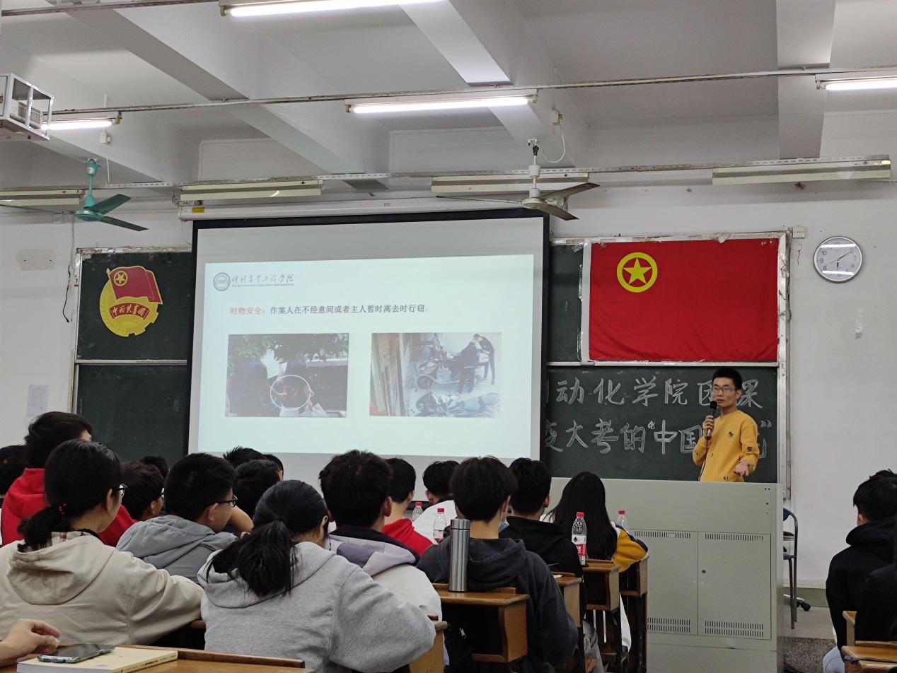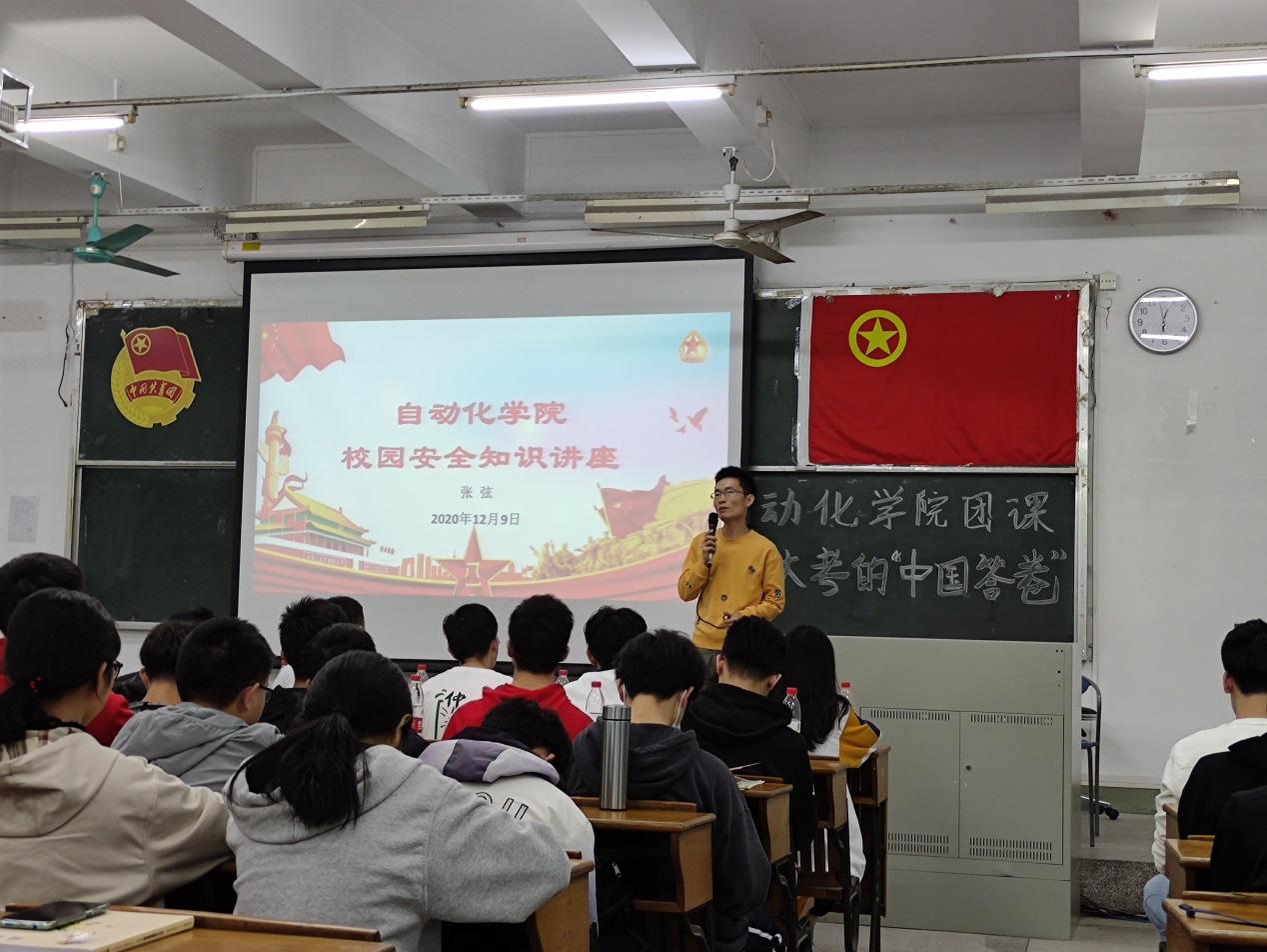 为增强同学们的校园安全意识,12月9日,自动化学院在教学楼B601举办了校园安全知识讲座。本次讲座由辅导员张弦老师主讲,自动化学院党总支副书记黄毅、辅导员袁萌、辅导员江晗菁和各年级学生代表参与讲座。