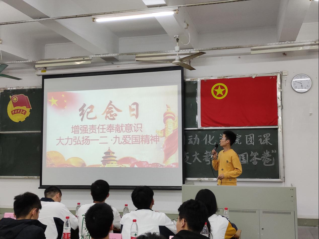 为传承“一二•九”运动的精神,激发同学们的爱国热情,增强同学们的责任奉献意识,12月9日下午,自动化学院在B601课室举行“增强责任奉献意识,传承‘一二•九’精神”讲座。自动化学院党总支副书记黄毅、辅导员袁萌、江晗菁和各年级学生代表们参加了本次讲座,本次讲座由自动化学院团委副书记张弦老师主讲。