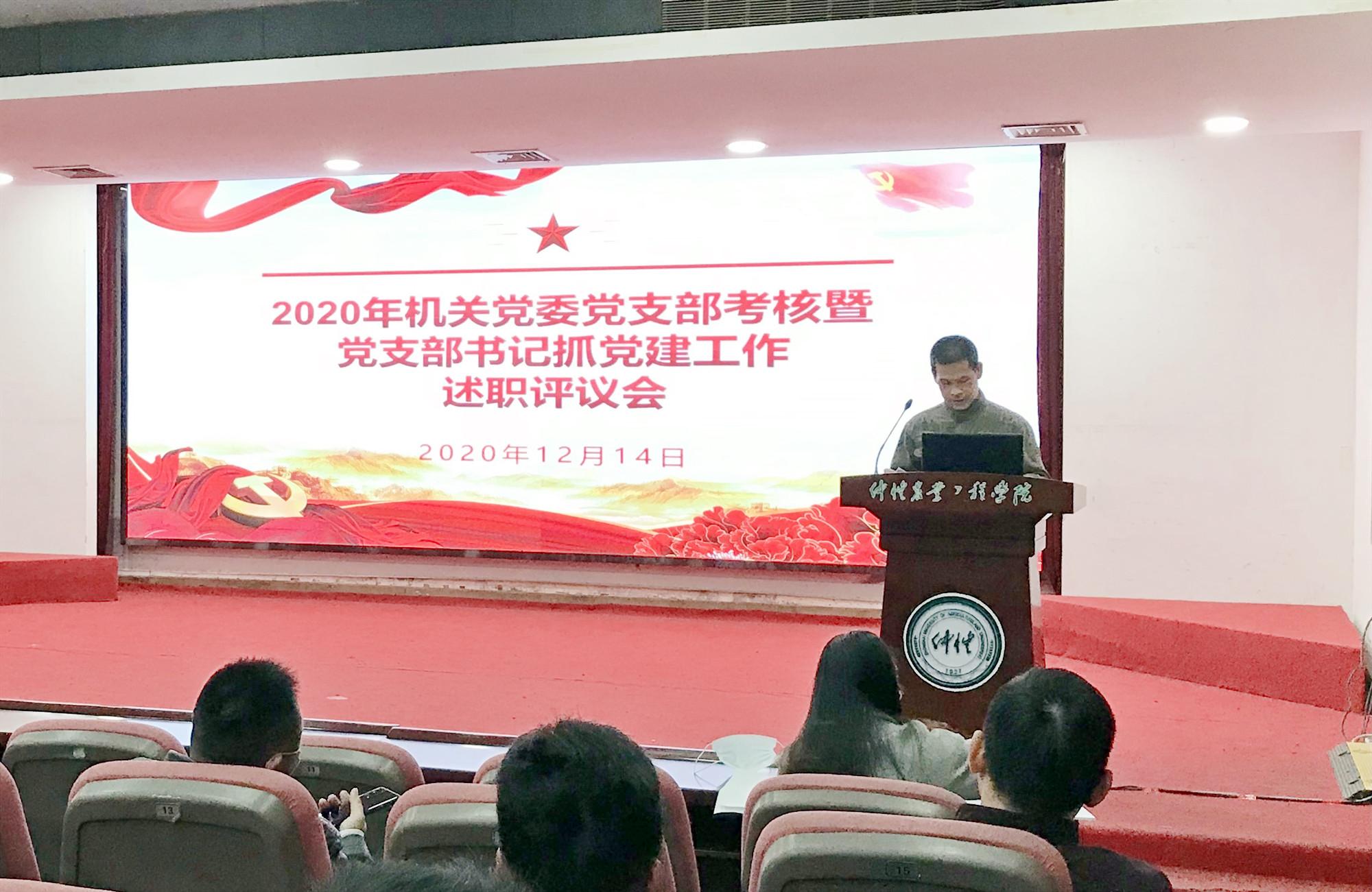 12月14日,2020年机关党委党支部考核暨党支部书记抓党建工作述职评议会第七小组会议在海珠校区学术报告厅召开,白云校区党支部、基建处党支部和教学科研基地党支部全体党员参加会议。会议由机关党委委员、白云办公室主任李一文主持。
