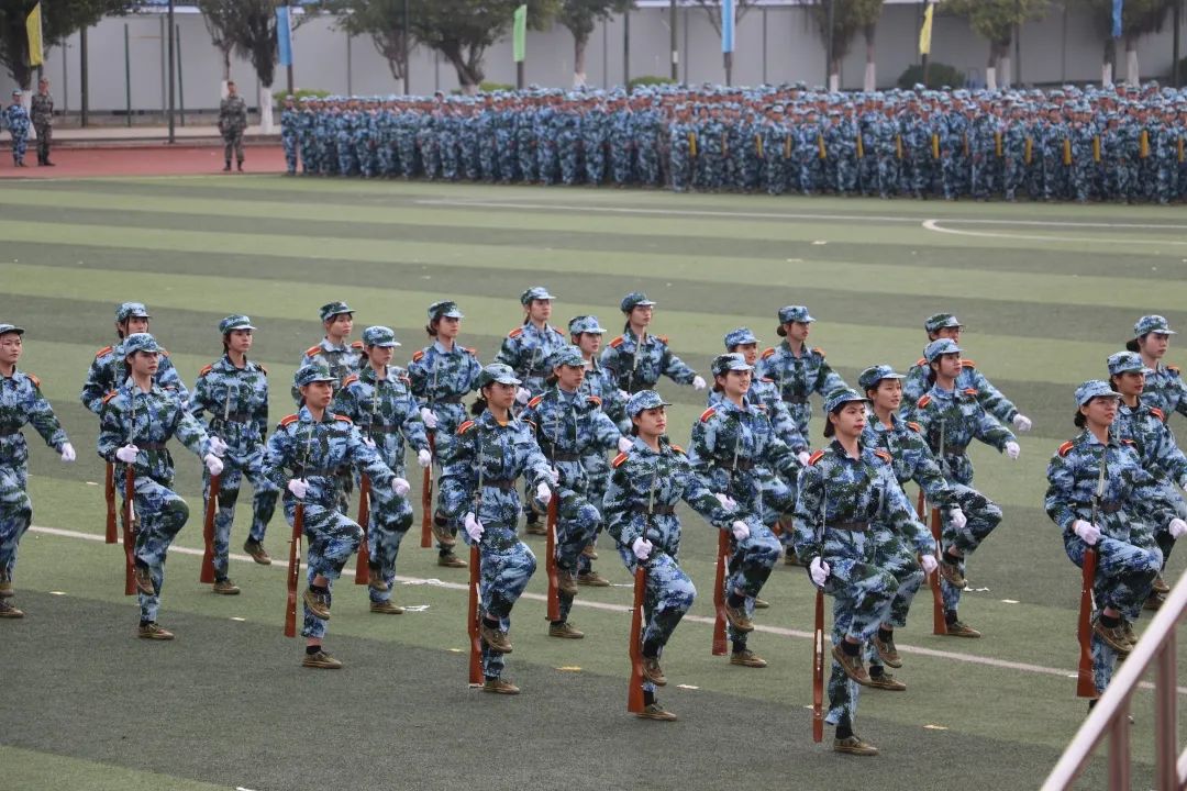 紧接着,军训成果汇报正式开始。管院分列式伴随着《中国人民解放军进行曲》,迈着铿锵有力的步伐,整齐划一、口号响亮,彰显出巾帼不让须眉的气势。管院学子分散在各特色方阵,在教官的带领下,团结一心,带来了一场精彩的汇报演出。