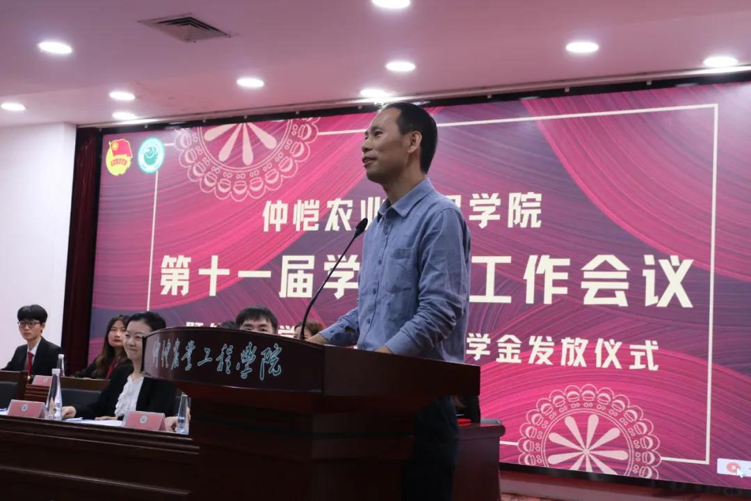 4月11日上午,仲恺农业工程学院第十一届学生会工作会议暨仲菁校学生会基金会助学金颁奖仪式在海珠校区学术报告厅顺利召开。校团委书记熊友华、副书记杨珊珊(分管校学生会工作),办公室主任余倩花(校学生会秘书长),校团委学生副书记罗键、黄珮珊,仲菁基金会理事会代表陈戈,历届校学生会主席团代表、各学生组织代表以及各学院代表出席会议。校学生会全体工作人员参加会议。