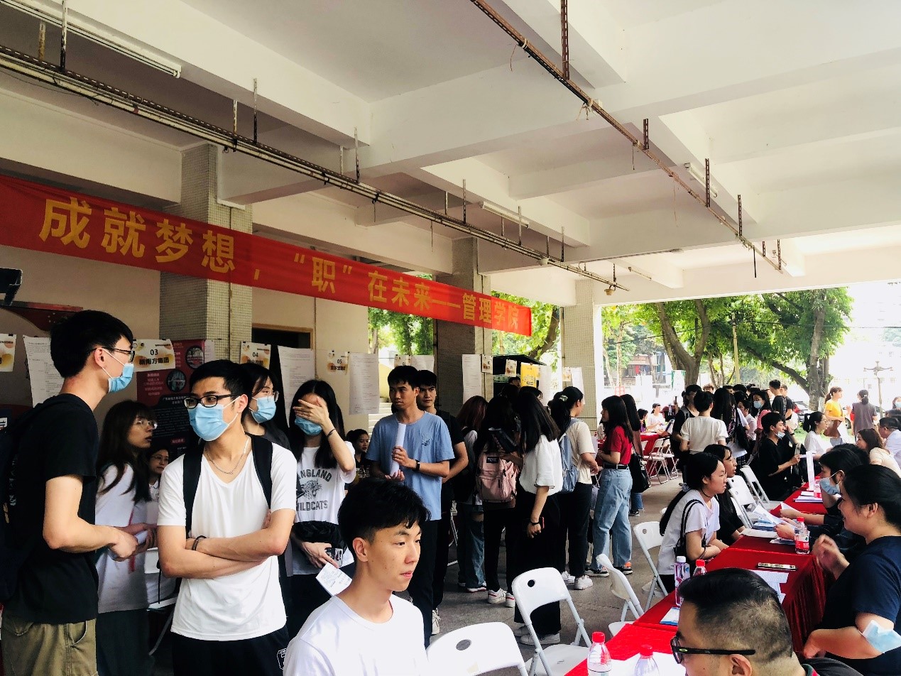 4月13号下午,管理学院于海珠校区教学楼架空层成功举办管理类专场招聘会。本次招聘会是管理学院针对2021届毕业生举办的首场招聘会,共计20家用人单位参加,包括广东金津果业有限公司、广州时代华商人才培训股份有限公司、广东新南方集团有限公司、广州尚业控股有限公司等企业。党总支书记柯锦泉和老师陈春霞也莅临现场进行指导。