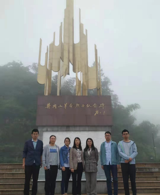 会议间隙期间,资环教工党支部6位青年博士党员前往井冈山烈士陵园进行党史学习和爱国爱党教育。井冈山烈士陵园始建于1987年,整体建筑包括陵园门庭、纪念堂、碑林、雕像园、纪念碑五大部分。门厅包含两组台阶,第一组49级,象征1949年新中国成立,第二组60级,寓意该陵园是在井冈山革命根据地建立60周年时修建的;纪念堂陈列有75位参加过井冈山斗争、建国后去世的先辈遗像及生平简介和78位建国前逝世的、参加过井冈山斗争的主要领导人遗像,以及5位老红军战士的骨灰;碑林共陈列有党和国家领导人、老红军战士和知名人士的题词140块;雕塑园则安放了19尊井冈山斗争期间的主要领导人与著名人物雕像。