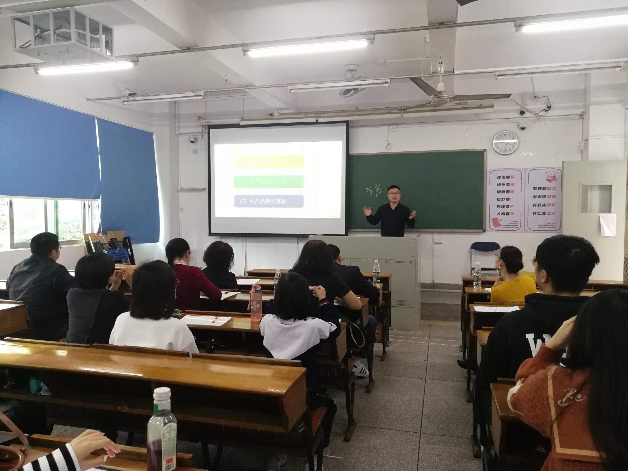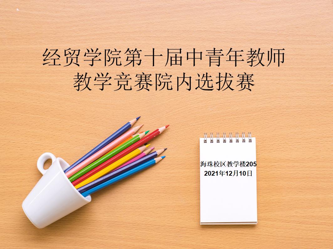 为推动学校第十届中青年教师教学竞赛顺利举行,进一步加强和提升我院中青年教师的教学水平和教学能力,努力建设一支师德高尚、业务精湛、充满活力的高素质专业化教师队伍。12月10日,经贸学院于海珠校区教学楼205举行了第十届中青年教师教学竞赛选拔赛。比赛邀请了教务处副处长梁雪莲、外国语学院副院长梅翠平、信息科学与技术学院副院长刘磊安、经贸学院副院长傅晓和张眉五位专家共同担任初赛的评委,张眉兼任比赛主持人。