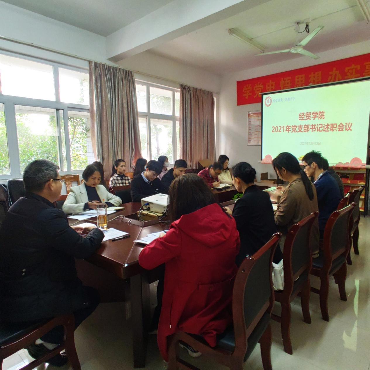 12月13日上午,经贸学院在白云校区刘宇新楼216室开展党支部书记述职会。学院党政领导班子成员、党支部书记、工会主席和师生党员代表参加会议。会议由经贸学院党委书记邓勿主持。