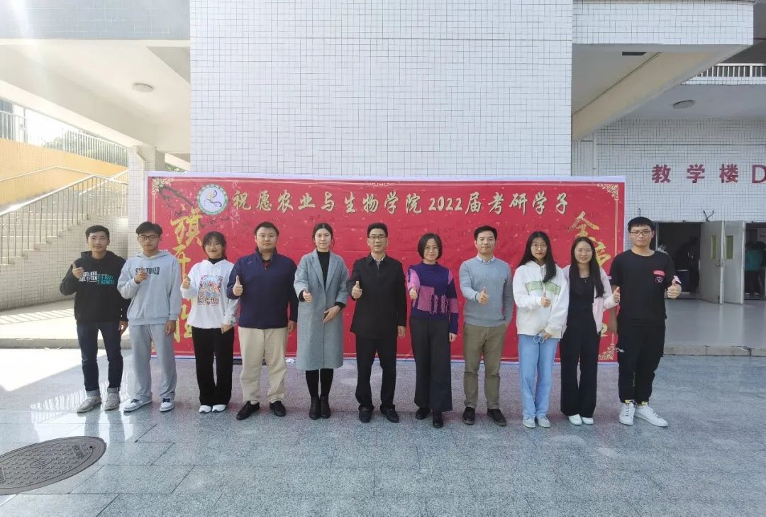 冬日寒冷,暖心送考。为助力农生考研学子圆梦,金榜题名,树立考试信心,12月24日中午,农业与生物学院党委书记陈丹雄,党委副书记周超雄,辅导员苏登、孙晓芳、李城、肖芳芳在白云校区综合教学楼门口一起为考研同学温暖送行。