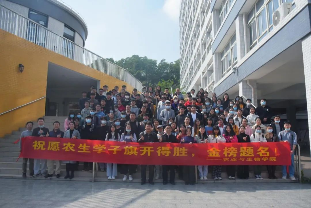 随后,陈丹雄告诉同学们要放松心态,合理调整自己的作息时间,冷静应考。同时他用院训精神“农行天下,生生不息”预祝同学们旗开得胜,金榜题名。接着,周超雄向同学们提出两点温馨提示,一是做好疫情防控措施,时刻将安全放在首位。二是不论考试结果如何,遇到困难,可以积极与老师沟通,老师永远是同学们最坚实的后盾。他们一齐衷心祝愿考研同学都能旗开得胜,凯旋而归。