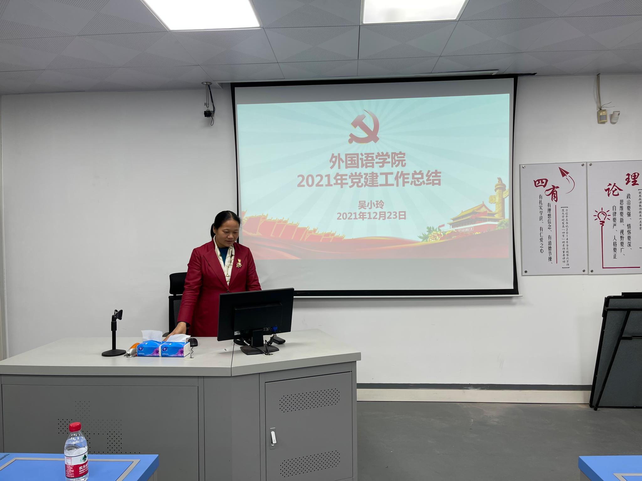 吴小玲从迈实稳定步子、抓实理论学习、谋实党内活动、做实群团工作四个方面对学院2021年的党建工作进行了总结,吴小玲指出学院党建工作在取得一定成绩的同时,也存在一些问题和差距,希望与会同志重视并改进。会上,与会同志还针对如何做好发展党员工作、党建与业务如何相融合、积极开展“党建特色活动”等进行了交流。