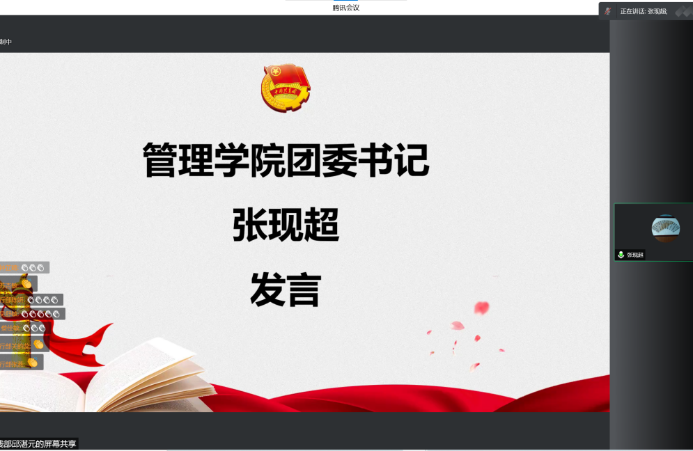 2月13日晚上,管理学院团委召开“读懂中国”系列活动线上分享会。管理学院团委书记张现超、管理学院团委全体学生干部参加了本次分享会。