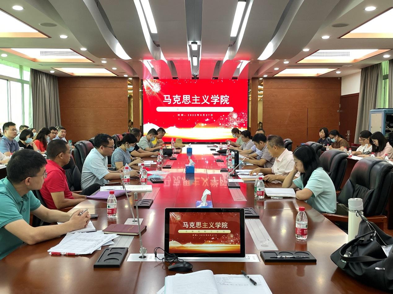 2022年8月27日,马克思主义学院在教学楼409会议室召开了新学期全体教职工大会。会议传达、学习了习近平总书记系列重要讲话重要指示批示精神,传达了广东省教育厅关于全省开设“习近平新时代中国特色社会主义思想概论”课程的相关文件精神。马克思主义学院院长蔡立彬主持会议并宣讲了广东省第十三次党代会精神,秦抗抗副院长总结了2022年暑期工作并布置了2022秋季学期工作。