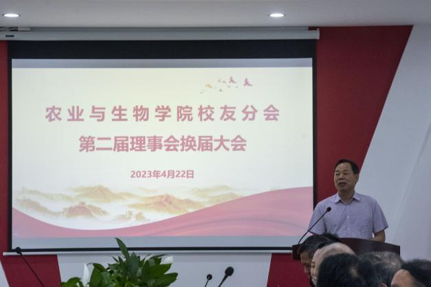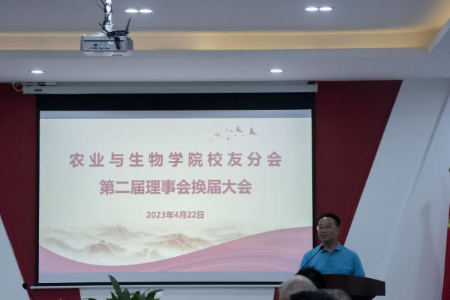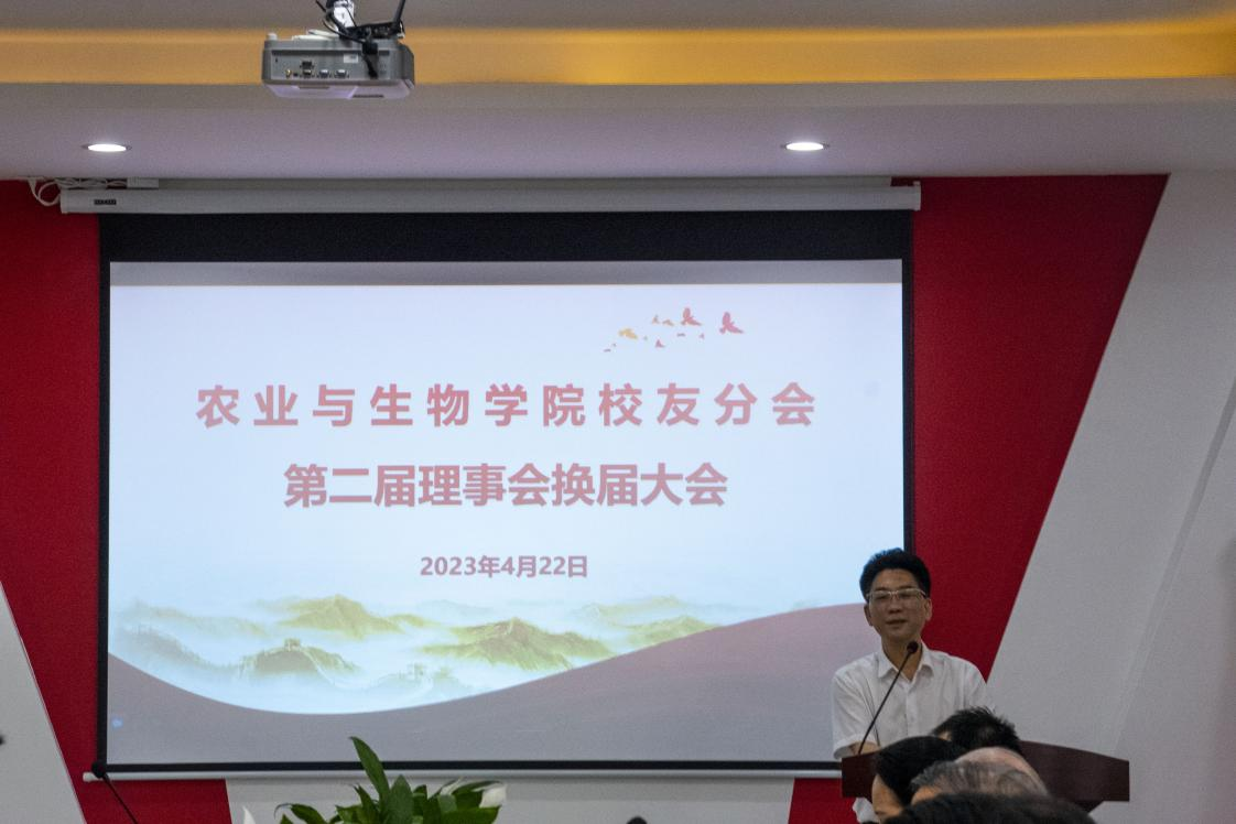 最后,学校党委常委、宣传统战部、校友事务部部长曾献尼发言。他代表学校向当选的新一届农业与生物学院校友分会第二届理事会成员表示祝贺,向荣归母校的各位校友表示诚挚的问候,向长期以来关心支持母校发展的各位校友表示衷心的感谢!同时,围绕学校未来发展目标定位,提出三点希望:一是要进一步汇聚校友力量,推动学校高质量发展,持续深化校友和母校、校友和校友间的交流与合作,为母校建设和发展作出更新更大贡献;二是要建立健全校友分会工作体系,完善校友工作架构,搭建沟通桥梁,打造高效交流合作平台;三是要为广大校友提供多元化全方位的服务,在学历提升、员工培训、共享资源、科技支撑等方面,助力校友发展,实现学校与校友同成长、共发展。