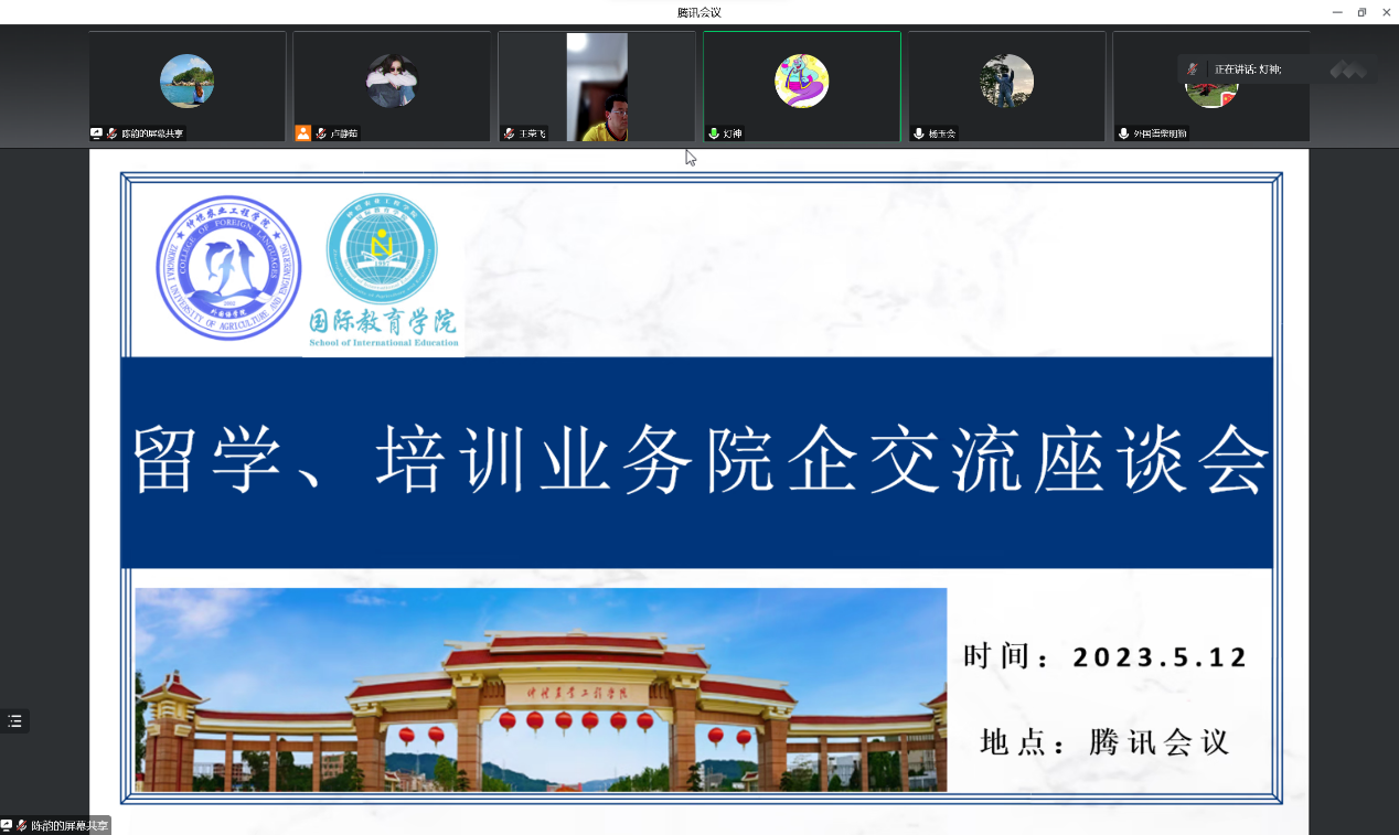 为全面落实好学习贯彻习近平新时代中国特色社会主义思想主题教育各项任务,推动主题教育走深走实,外国语学院针对从事留学和培训业务的校友开展摸底调研,并于5月12日下午,联合国际教育学院在腾讯会议平台召开了一场别开生面的留学、培训业务院企交流座谈会。