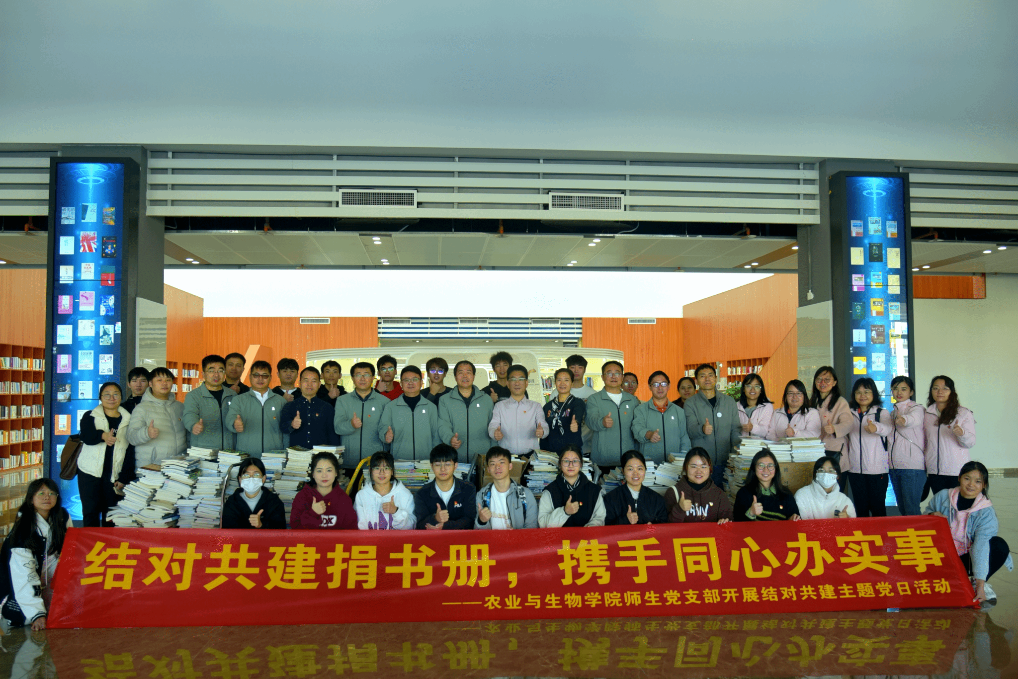 为营造校园书香氛围,丰富图书馆图书资源,12月28日上午,在农业与生物学院党委书记周超雄、副院长喻国辉(主持工作)的带领下,农业科学、植物保护、生命科学的教工党支部和学生党支部在白云校区图书馆开展了“结对共建捐书册,携手同心办实事”的主题党日活动。此次活动共有42名师生党员参加,捐赠图书共计2100余册。