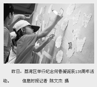 信息时报讯 (记者 成小珍 通讯员 王光琰) 昨日下午, “纪念何香凝先生诞辰135周年暨2013荔湾区‘香凝杯’中小学生书画大赛颁奖大会”在广州何香凝纪念学校隆重举行。现场还签订了《传承香凝文化共建协议书》,启动“香凝小书画家”培养计划。