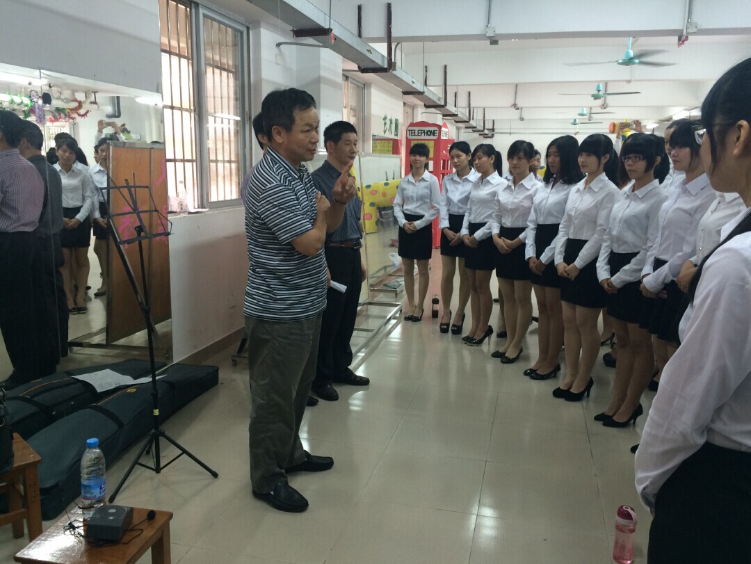 10月16日、17日下午,副校长易洪陶在相关部门负责人的陪同下,分别到白云校区、海珠校区检查“唱响白云”合唱音乐会的排练情况。